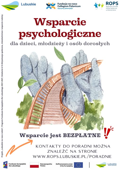 Od marca 2025 mieszkańcy powiatów zielonogórskiego (oraz Miasta Zielona Góra), świebodzińskiego, międzyrzeckiego, słubickiego, sulęcińskiego, gorzowskiego (oraz Miasta Gorzów Wlkp.) a także strzelecko-drezdeneckiego mogą skorzystać z BEZPŁATNEGO wsparcia PSYCHOLOGA